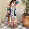 Women's Vintage Print Ethnic Style Long Puffed Sleeve Holiday Commuter Dress