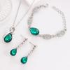 Elegante conjunto de joyas con forma de gota de agua.: Pulsera, collar y pendientes de hojas de diamantes para mujer, colección de 3 piezas
