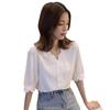 Camisa de mujer Tops cómodos y versátiles Camisa elegante de gasa blanca Camisa de manga corta de moda Camisa de encaje de súper hada Top elegante de moda con temperamento