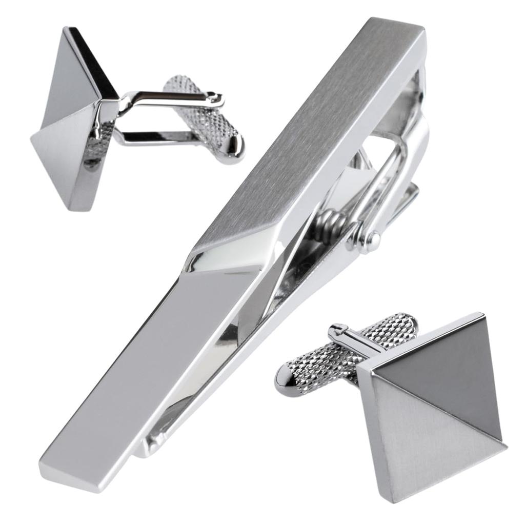 Juego de gemelos con alfiler de corbata, fabricado en Japón, de latón, geométrico, plateado [Tabarat] para hombre