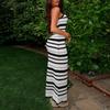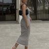 Vestidos Largos de Punto de Verano para Mujer con Temperamento Fruncido a Rayas Sexy Slim Ajustado Cadera