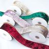 Cinta de terciopelo ancha para decoración de árboles de Navidad Cinta de árbol de Navidad con borde de alambre vintage rojo con alambre