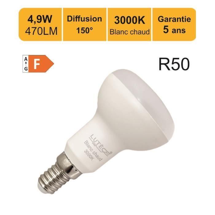 Ampoule LED E14 R50 - Non réglable - 4,9W - 470Lm - Blanc chaud - 3000K
