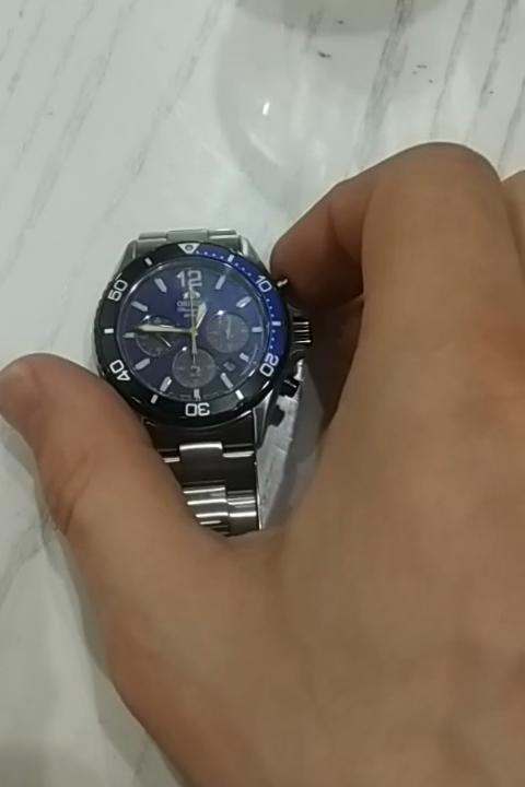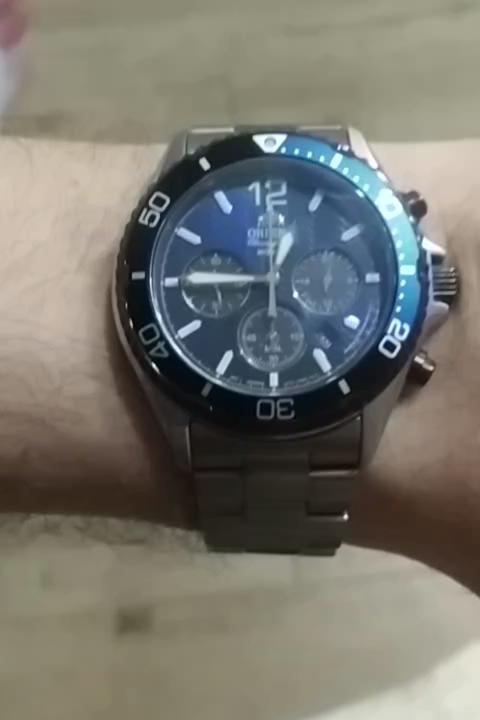 Precioso cronógrafo de buceo con energía solar. Queda muy bien en la muñeca. El color y la textura de la esfera son geniales - como un pedazo de profundidad oceánica en la muñeca. Ligeros y parecen bastante compactos.