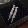 925 Silver Needle Bow Earrings: Exquisite Full Diamond Long Tassel Earrings for Women - Trendy Light Luxury Style