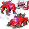 【Las luces LED y la música hacen bailar a los niños】: Los dinosaurios y los coches son siempre una gran atracción para los niños.. Este coche LED transformable de dinosaurio es algo que todo amante de los dinosaurios desea.. El juguete de dinosaurio transformable con luces LED y música crea sonidos asombrosos y efectos de luz coloridos.. Los niños pueden bailar con la música.