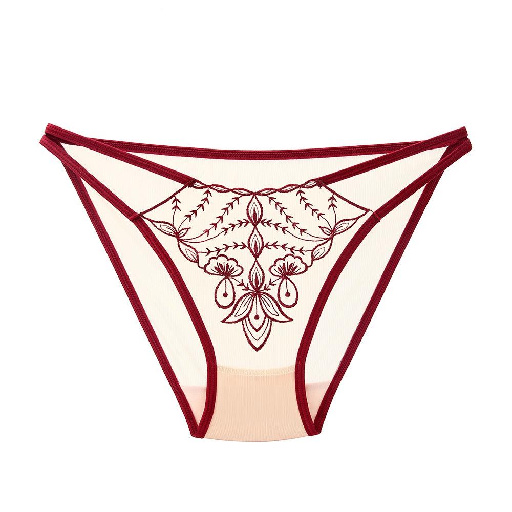 Original Light Luxury Temperament Women's Briefs High-value Tulle Embroidered Hollow Waist Cotton Crotch Hip-wrapped Sexy Underwear
