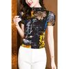 Lace Half Turtleneck T-shirt for Women In Spring and Summer New Printed Top Age-reducing Mesh Base Shirt Fashionable Small Shirt