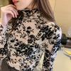 Camiseta de invierno con cuello semi-alto, perspectiva estampada, sexy y versátil para mujer