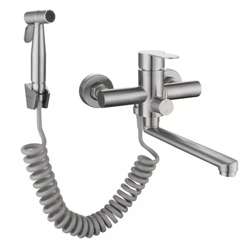 Grifo mezclador de pared para cocina, material de acero inoxidable 304 de grado alimentario, giratorio 360°