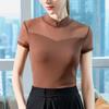 Camiseta Negra de Cuello Alto de Manga Corta para Mujer Nueva Otoño Fina Interior Camiseta Básica Chic Ajustada