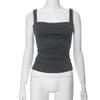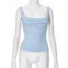 GMXIA Women's Spring Halter Slim Solid Color Patchwork Pleated Halter Vest T-shirt Top