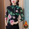 Nueva camiseta de manga larga con estampado de leopardo y cuello semi-alto para mujer, estilo retro ajustado.