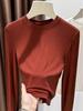 Camiseta de Base de Terciopelo Independiente Pequeña Color Café para Mujer Nueva Ropa Interior de Manga Larga Otoño e Invierno Moda Cálida para la Piel Chaqueta Inferior