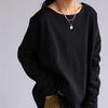 Camiseta Minimalista de Otoño de Longitud Media con Mangas Largas para Mujer, Holgada, Casual, Cuello Redondo, Jersey, Color Sólido, Camiseta Básica para Mujer