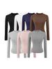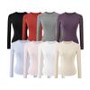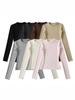 Top de Otoño Manga Larga Cuello Redondo Manga Camiseta de Mujer Americano Slim Tendencia Marca Color Sólido