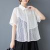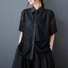 DIMANAF 2025 Spring New Women Blouse Loose Solid Basic Shirt Short Sleeve Vintage Shirt Casual Tops Tees Plus Size