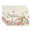 Cuadros Búfalo Conejo Zanahorias Pascua Juego de 1/4 Manteles Individuales, 30 x 45 cm, Manteles Individuales para Banquete de Primavera, Manteles Individuales Lavables, Decoración para Fiesta de Cocina