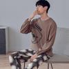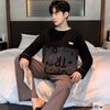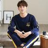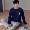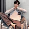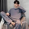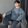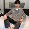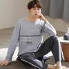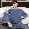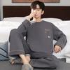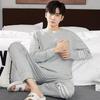 Pijama de manga larga 100 % algodón para hombre: informal, cuello redondo, ideal para usar en exteriores, perfecto para primavera y otoño.