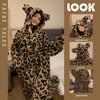 Manténgase cómoda y elegante durante los meses más fríos con este conjunto de pijama de invierno para mujer, que presenta un elegante diseño con estampado de leopardo.. Fabricado en suave vellón coral, el conjunto promete máxima comodidad y calidez.. Incluye un camisón con capucha y una camiseta de manga larga combinada con pantalones a juego, todos confeccionados con material de poliéster duradero.. Perfecto para descansar en casa, este conjunto de pijama combina funcionalidad con un toque de moda.