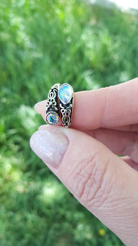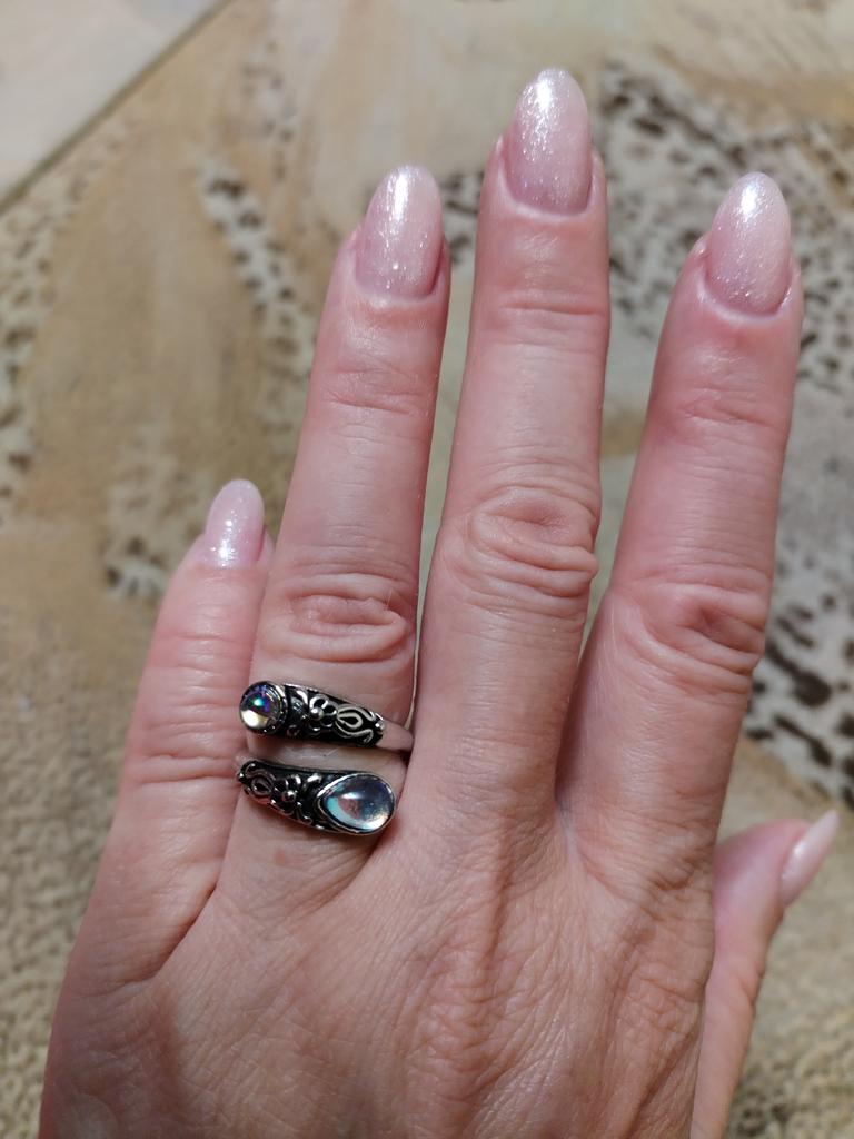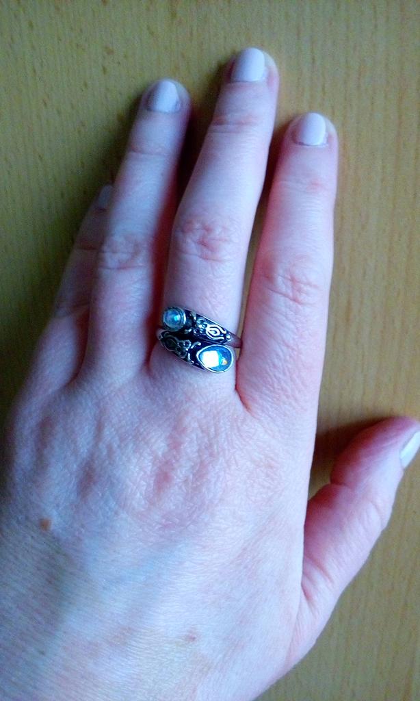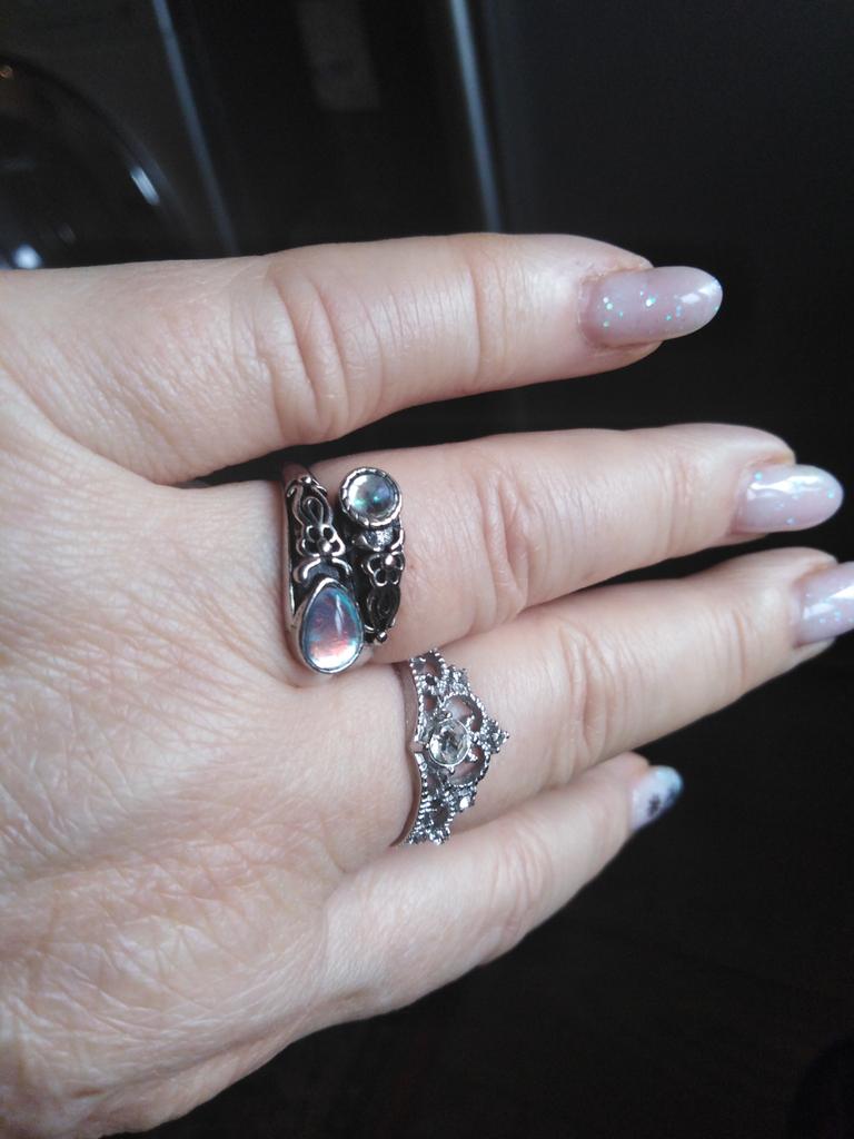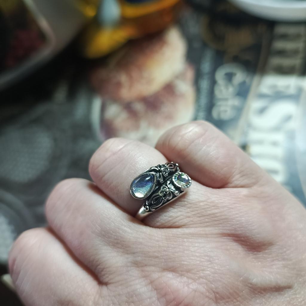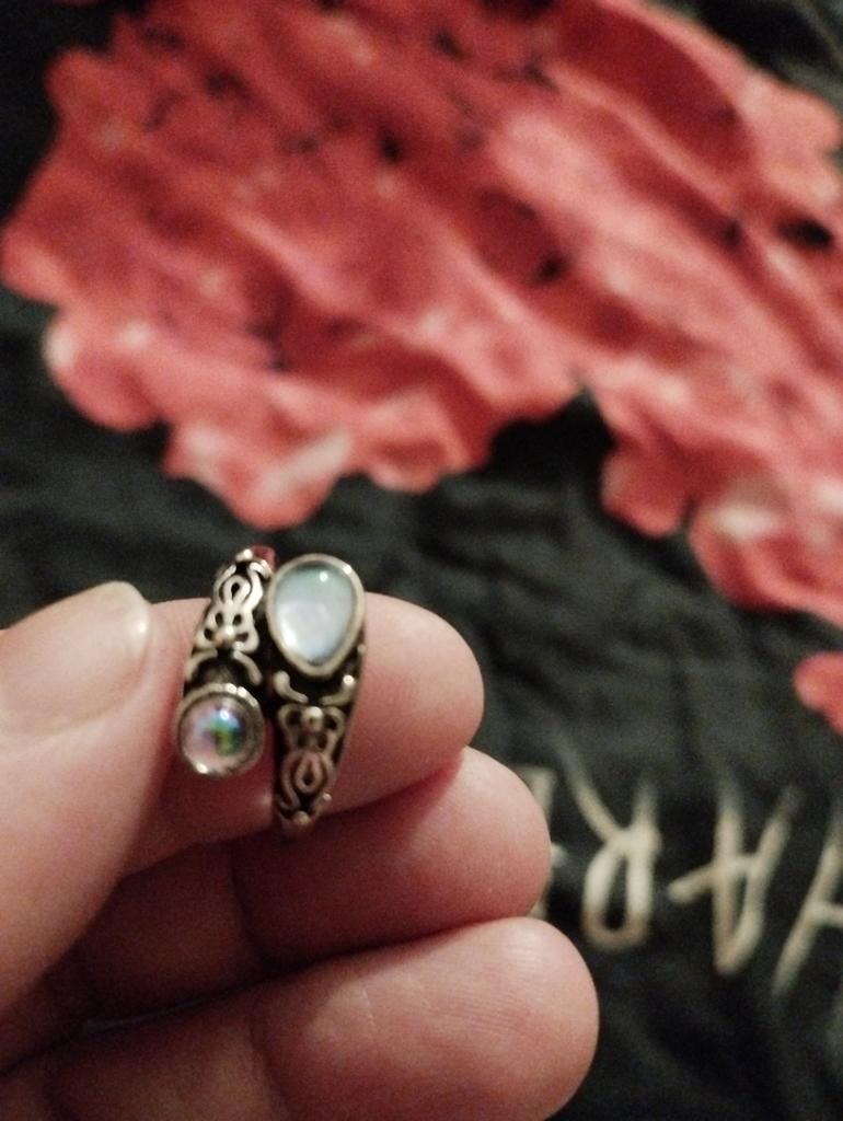 Un anillo muy bonito, se ve caro, como de plata con piedra lunar u ópalo, todo como en la foto. El tamaño se puede cambiar, lo cual es conveniente. Estoy satisfecha con la compra, gracias :)