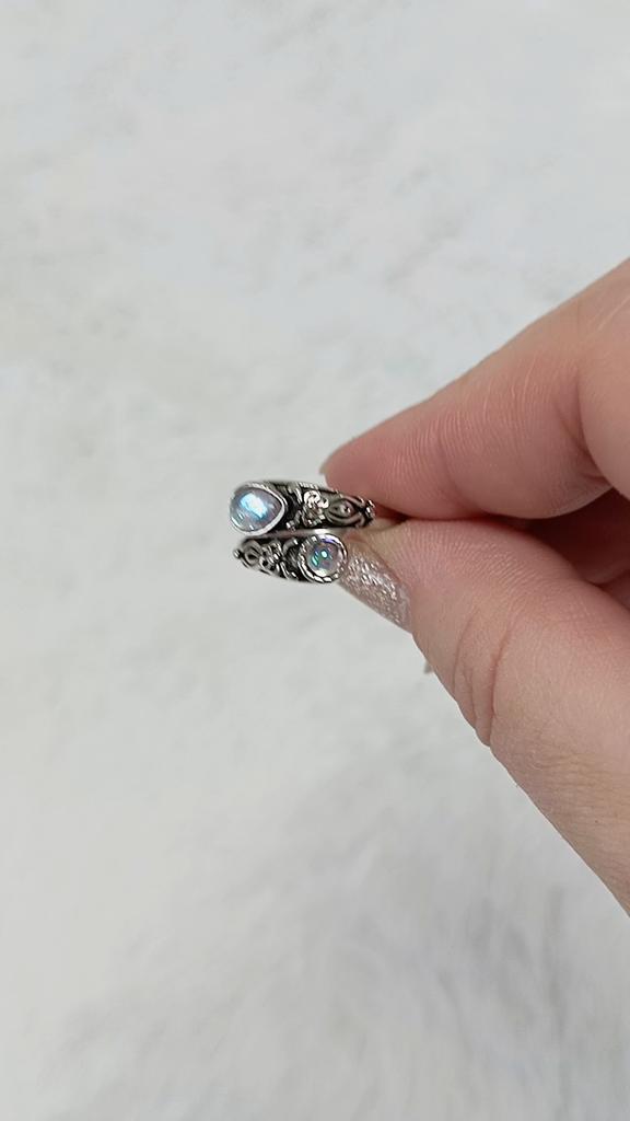 Anillo, anillo de piedra lunar, anillo ajustable, bohemio, vintage, anillo de cuchara, mariposa, piedra sintética, regalo