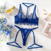 Hot-selling eyelash lace sexy hollow perspective sex underwear four-piece suit for women