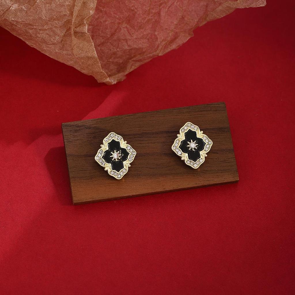 Vintage French Retro Diamond Lace Rhombus Earrings - Light Luxury & High-End Style