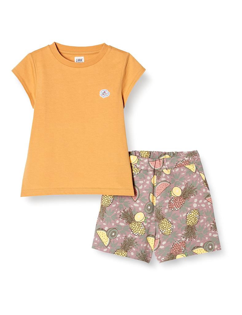 Top and bottom set of plain cut and sew and summer fruit shorts