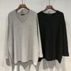 Top holgado de manga larga con escote en V y abertura media para mujer (otoño 2023)