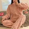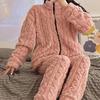 Conjunto de Pijama de Franela con Cremallera para Mujer - Cuello Alto, Traje Grueso y Cálido de Forro Polar Coral para Otoño e Invierno.