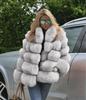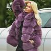 Abrigo de piel sintética para mujer con detalles de piel de zorro para otoño e invierno.
