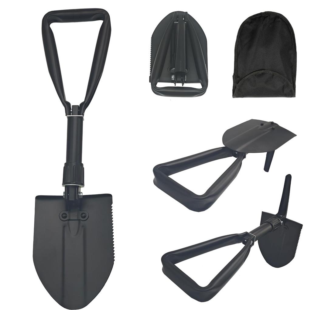 Pala de Camping Pala Nieve Acero Alto Carbono Pala Empotrada Pala Multifuncional Mini Plegable Bolsa de Almacenamiento Incluida 7 Funciones Escalada Camping