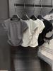 Camiseta Casual de Manga Corta y Cuello Redondo de Moda para Mujer Verano Nueva Sólida Ajustada Elegante Suelta Camisetas de Mujer Simple Plisada Crop Top 26366