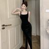 Women's Square Neck Handmade Beaded Skinny Slit Dress Dress