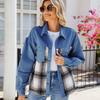 YYFS Chaquetas y abrigos de cuello polo de manga larga con estampado de cuadros informales a la moda para mujer para otoño e invierno