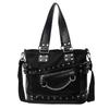 Bolso de hombro de cuero PU para mujer con costuras, alta capacidad, hebilla de remaches, cremallera, alta calidad