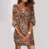 GMXIA Casual Loose V-Neck Printed Midi Sleeve Women's Dresses