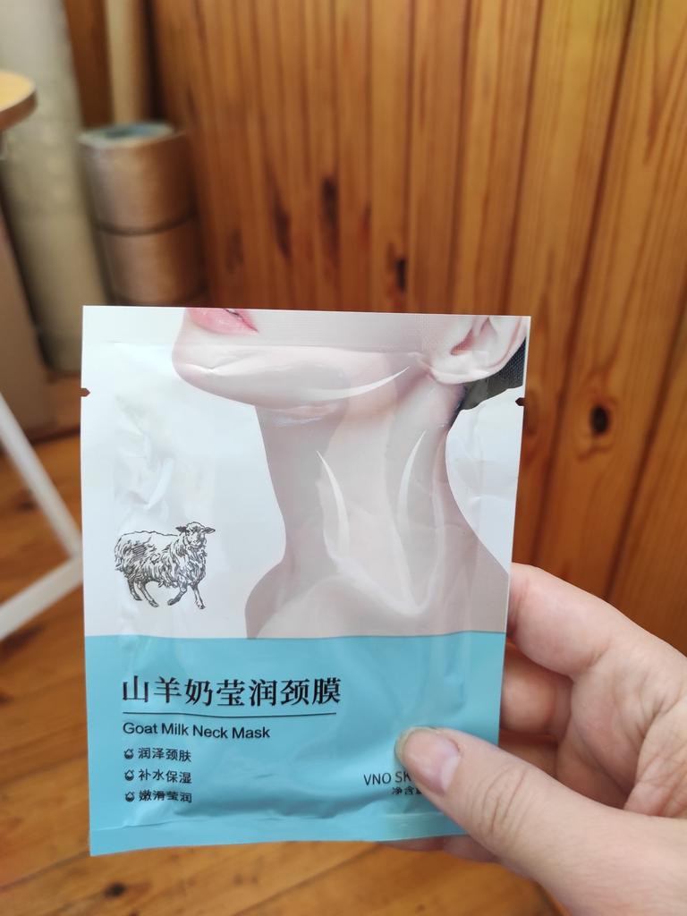 Estas son mascarillas para el cuello, con la adición de leche de colega. Hay 5 piezas, aún no las he probado