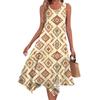 Vestido Midi de Moda Casual para Mujer con Cuello Redondo, Sin Mangas, Estampado, Bajo Irregular