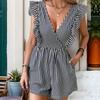 Summer Women Fashion Style Deep V-neck Ruffled Rompers Women's Loose Striped Lace-up Rompers Shorts