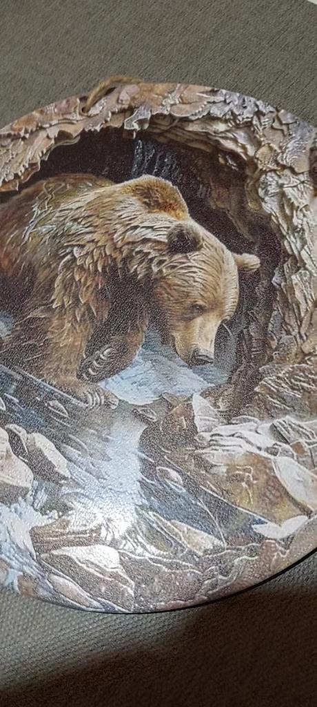 Madera Oso Pardo Rústico Escena de Cueva - Letrero Redondo de Madera para Pared Resistente a los Rayos UV y Arañazos, Decoración Fácil de Colgar para Exterior/Interior para Puerta, Pared, Habitación del Hogar, Casa de Campo
