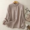 DIMANAF 2025 Plus Size New Summer Blouse Linen Solid Shirt Women Loose Long Sleeve Shirt Casual Tops Tees