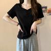 V-neck Short-sleeved T-shirt for Women In Summer New Style Loose and Slim Solid Color Student Hot Girl Clavicle-exposed Top Design Sense