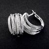 Huitan Moda Color Cruz Pendientes de Aro para Mujer Cristal Completo Circonita Cúbica Declaración Pendientes Femeninos Tendencias Joyería