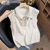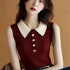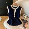 Chaleco de punto ajustado sin mangas con solapa y botones de color contrastante para mujer coreana