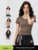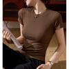 Women's Spring Nude Skin Feeling Lycell Vinyl Fibre Wool V-neck T-shirt Elastic Slim Bottoming Shirt