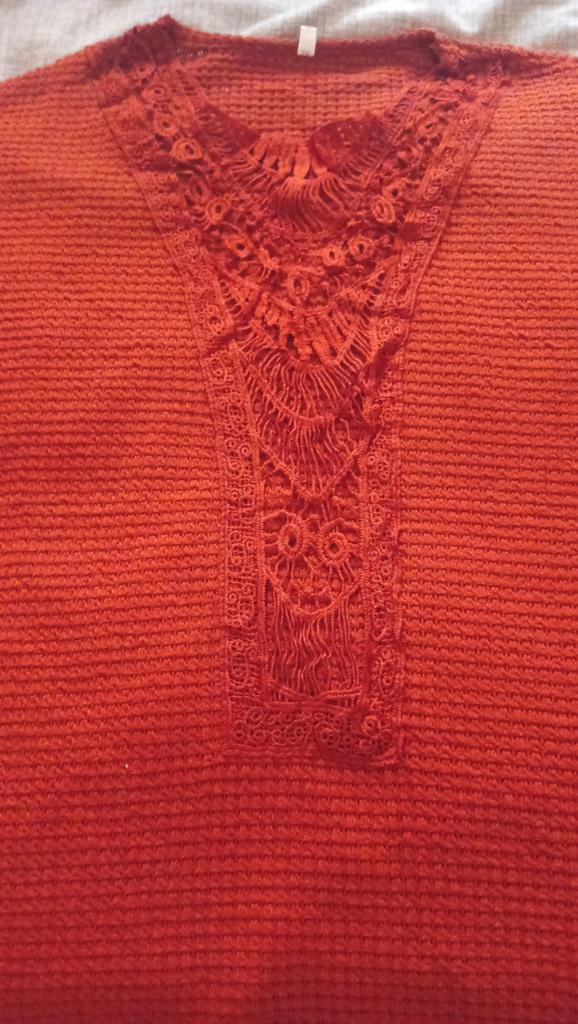 El rico color vino y los hermosos patrones intrincados hacen que la blusa sea muy llamativa y memorable. Me gusta mucho. ¡La llevaré con placer!