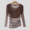 INCERUN Camisetas Tops de Fiesta Clubwear de Malla con Brillo y Volantes de Capas para Hombre con Cuello Swing y Manga Larga