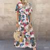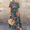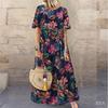 Vestido de Verano con Estampado Floral - Maxi Casual de Cuello Redondo para Mujer de Manga Corta Suelto para Vacaciones en la Playa